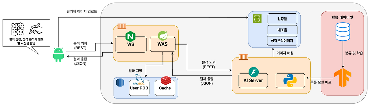 AI 기반의 필적 감정 서비스를 개발하게 되었다. 검사하려는 검증물과 비교 대상인 대조물 사이의 유사도 및 필적 특징을 추출하여 제공하는 서비스이다. 내가 담당하게 된 파트는 AI 서빙이었다. 평소 AI 기반 서비스가 어떻게 이루어지는지 많이 궁금하였고 이 참에 공부해보는 것도 좋겠다고 생각했다.