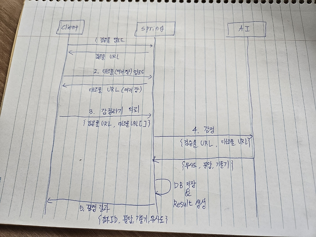 - 감정하기를 의뢰한다. (앱 -> 스프링)