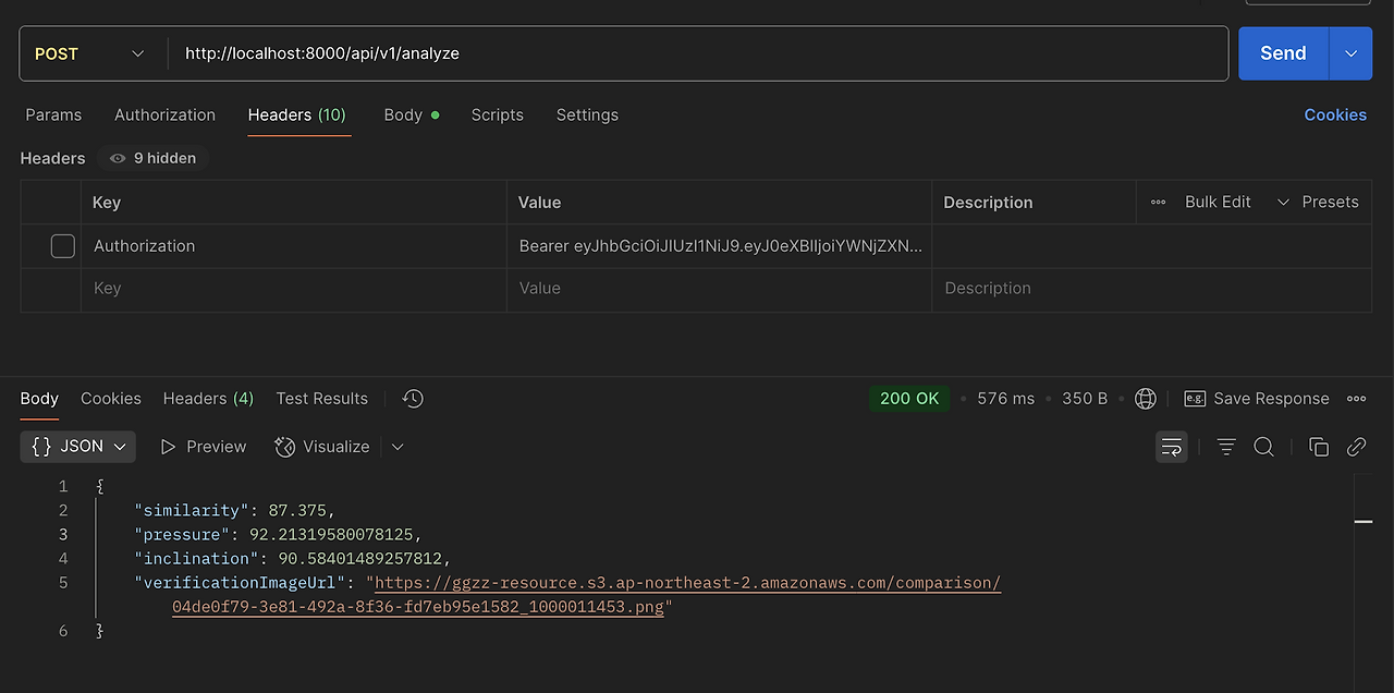 - 사용자가 분석할 검증물을 Presigned URL을 통해 S3에 업로드한다. (앱 -> 스프링)