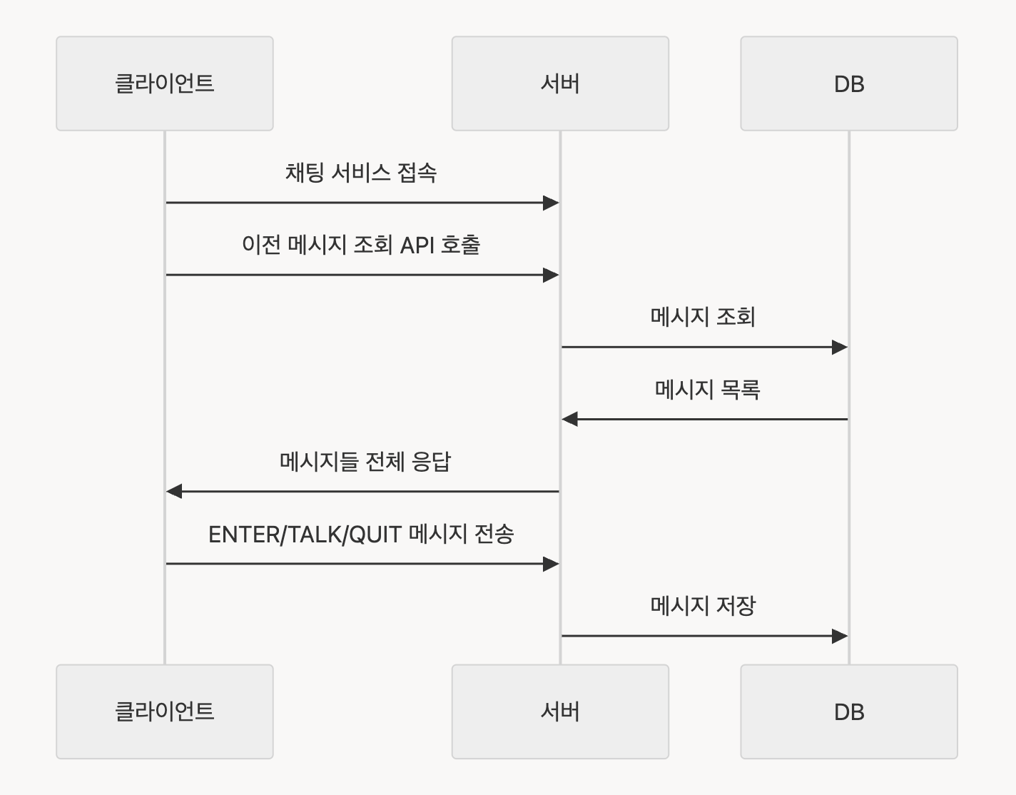 - 메시지는 수정 및 삭제가 이루어지지 않고, 저장 및 조회만 발생한다.