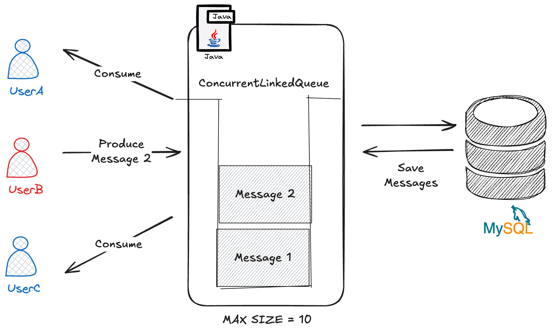 처음에는 동시성 처리가 가능한 BlockingQueue를 사용하기로 결정했다. 그런데 사용자가 새로 접속한 경우, Queue에 있는 내용들을 조회할 필요가 발생했다. 따라서, 동시성 처리가 가능하면서 stream이 가능한 컬렉션을 찾던중 ConcurrentLinkedQueue 를 사용하게 되었다.
